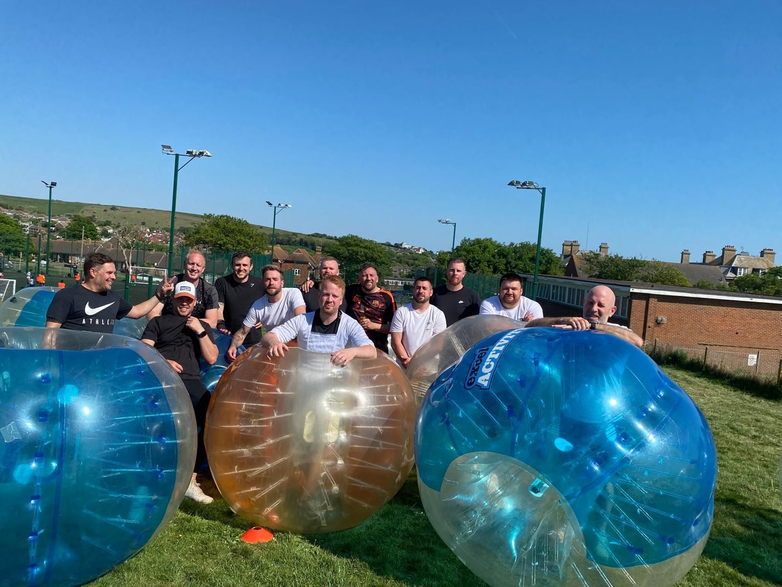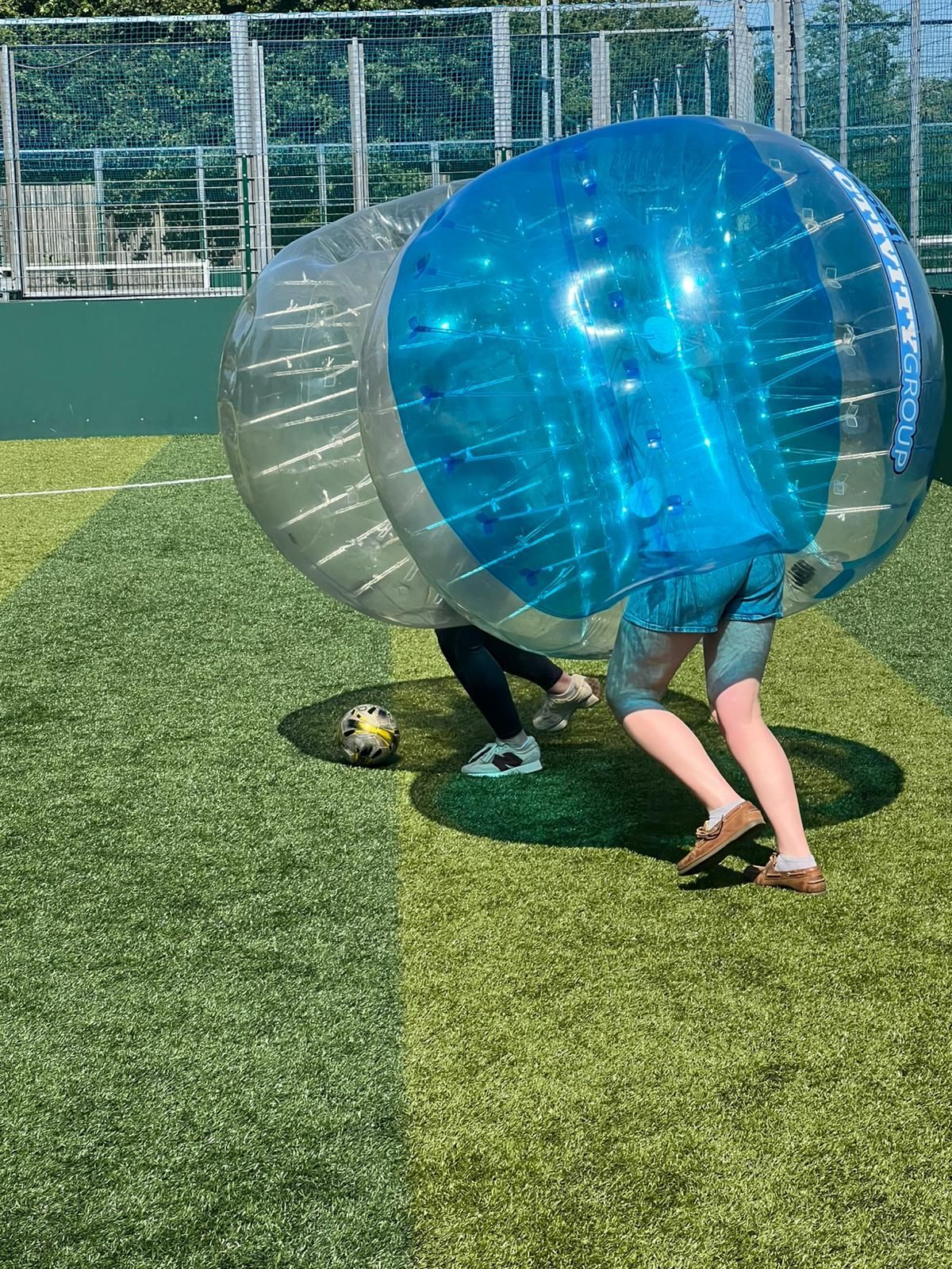 Zorbing Football, also known as bubble football, is a sport where players wear inflatable, transparent zorbing balls around their upper body. The aim is to play Football while encased in these giant bubbles, adding a fun and challenging element to the game as players bounce, collide, and roll around. It's a unique and entertaining twist on traditional football and just as fun for spectators alike.